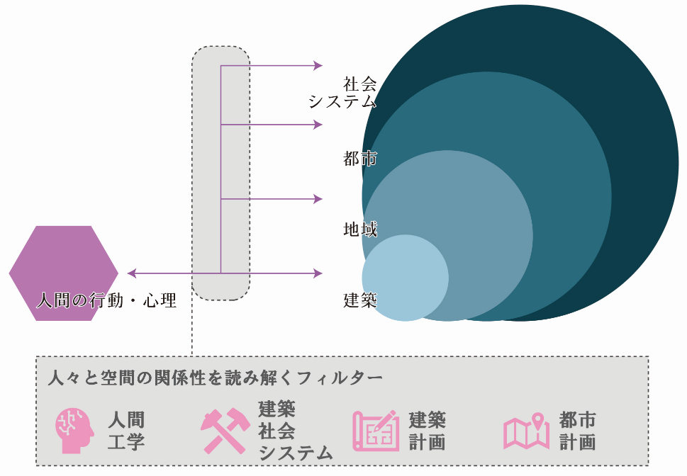 建築あるいは都市空間における「空間構造・社会システム」と「人間の行動・心理」との相互関係を解明することにより、